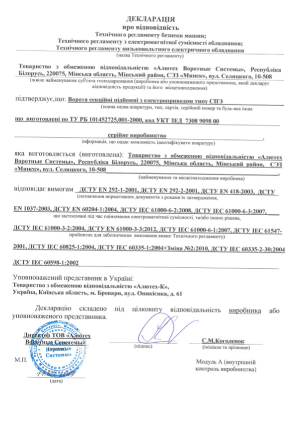 Документальна гарантія на всі вироби й автоматику.