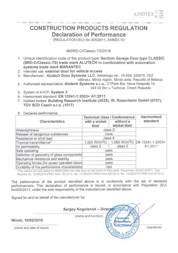 Профілі серії Classic стійкі до ударних і вітрових навантажень до 850 Па (можна порівняти зі швидкістю вітру до 135 км/год). Це дає змогу встановлювати ролети "АЛЮТЕХ" у районах із різними вітровими навантаженнями